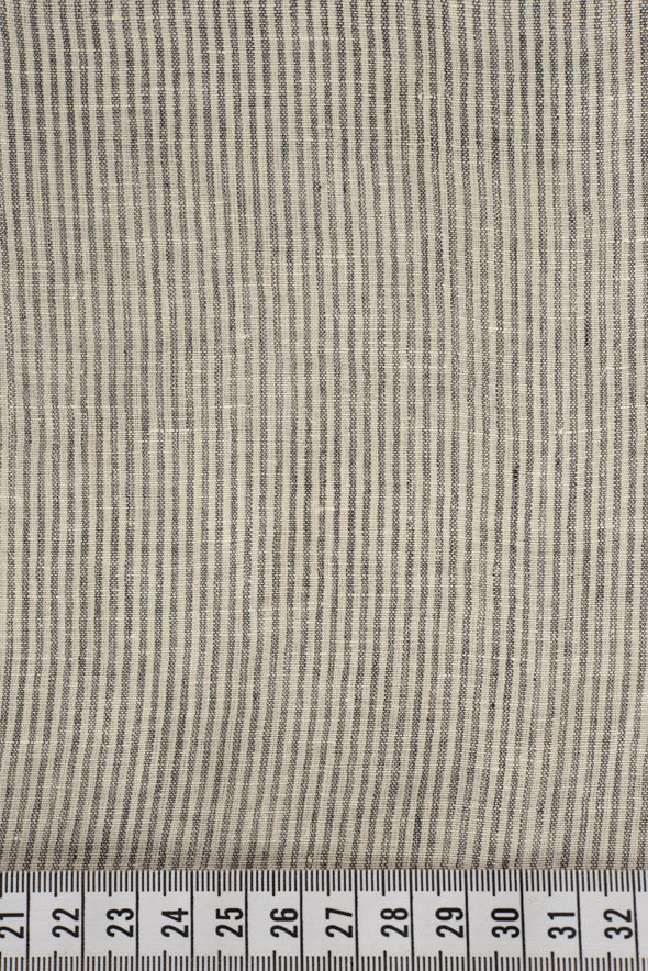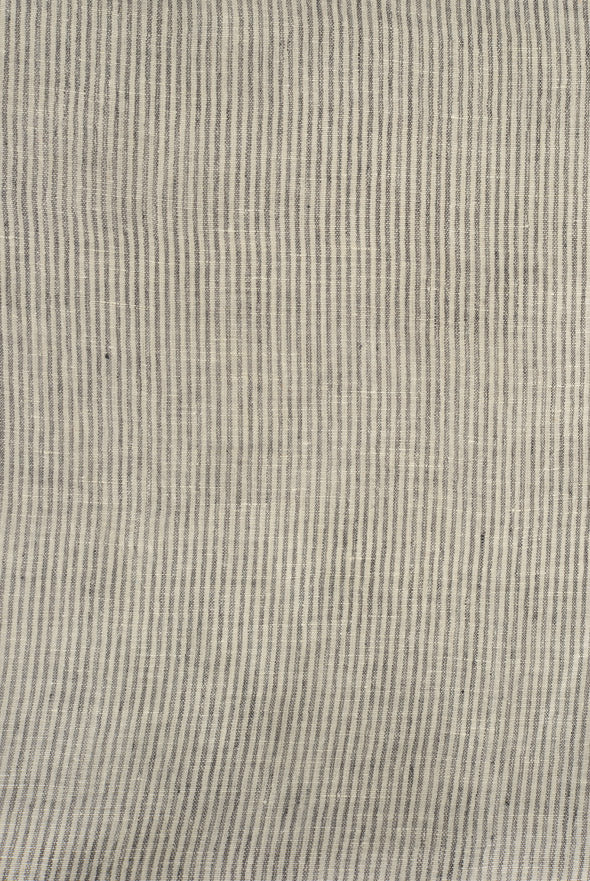 • A semi-sheer linen with alternating charcoal and natural white pinstripes.