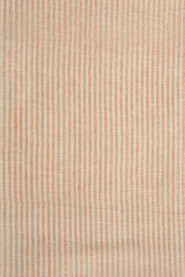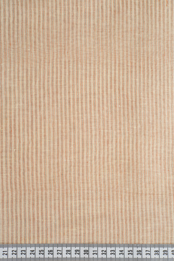 • A semi-sheer linen with alternating beige, red and natural white pinstripes.